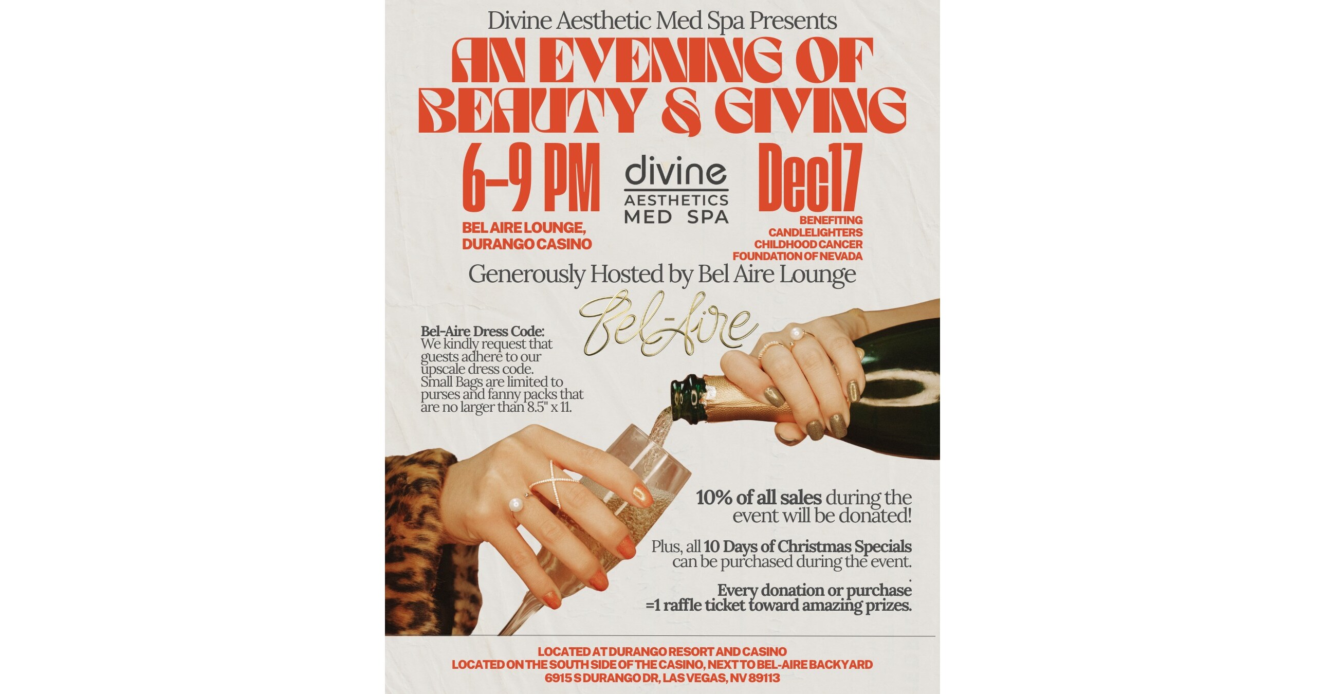 The fundraising will intensify with the “10 Days of Christmas” promotion, running from December 8th to December 17th. Each day will unveil a unique special on Divine Med Spa’s services. The campaign will conclude on December 17th with a special event hosted at the Bel Aire Lounge inside the Durango Resort and Casino from 6:00 p.m. to 9:00 p.m.